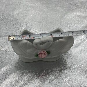 Vintage Ceramic Swan Planter Vase White With Pink Rose Accent Trinket Dish