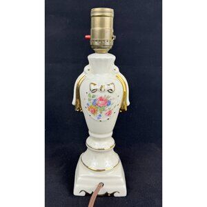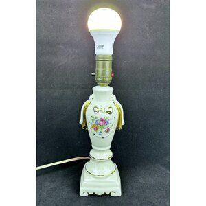 Vintage Ceramic Table Lamp Boudoir Floral Design Gold Accents 5 ft Power Cord