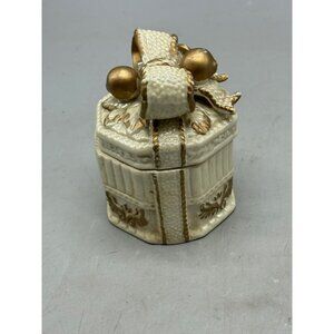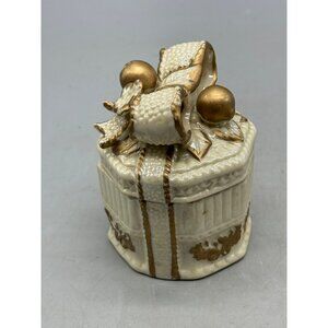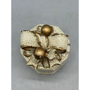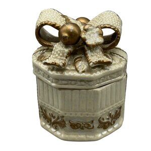 Vintage Ceramic Trinket Box With lid bow & Gold Accents octagon Christmas READ