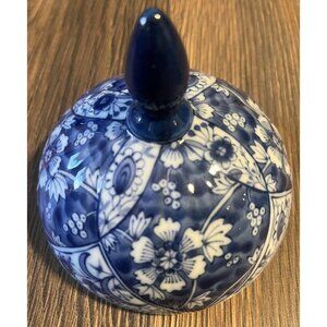 This vintage ceramic round trinket dish is a special edition piece from Japan. With a glossy finish and blue and white floral pattern, it is perfect for any room, including the study, kitchen, and dining room. The dish comes with a lid making it a practical and decorative addition to your collection.