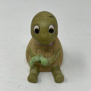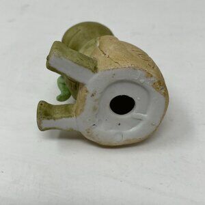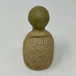 Vintage Ceramic Turtle Figurine Holding Green Worm Caterpillar Sitting Up Friend