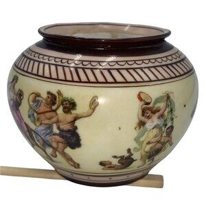 This exquisite vintage ceramic vase, featuring a removable insert, showcases a hand-painted classical scene with vibrant colors. Ideal for collectors or those seeking an elegant decorative piece. The detailed artistry and craftsmanship reflect a European style, adding a touch of sophistication to any space.