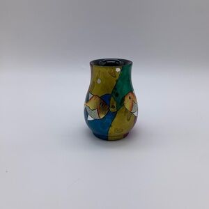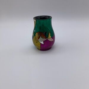 This vintage ceramic vase is a beautiful piece of Vietnamese lacquerware, handmade in Japan. The intricate design and attention to detail make it a valuable addition to any collection. The vase is perfect for displaying flowers or simply as a decorative piece such as a desk top pencil holder. The Japanese culture and ethos are evident in the vase's construction and design, making it a unique and special item. Measuring 4.5” high, 3.5” wide, 2-7/8” diameter & weights 5 oz
