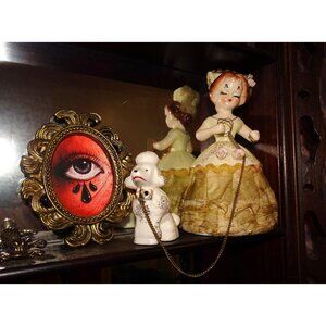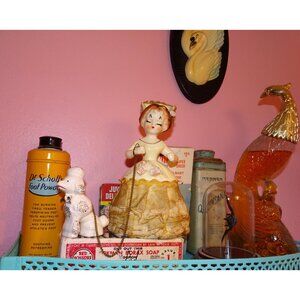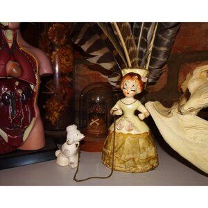 Condition: Used but in great condition. A tiny bit of paint missing from her hair and a small chip on the rose petal on her dress. Please see last photo. The women is missing the parasol that would go in her left hand, and I think this also originally came with another poodle. These small flaw are not super noticeable and they do not take away the beauty and integrity of this unique vintage item.