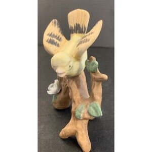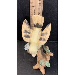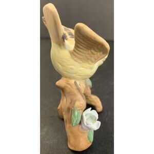This vintage ceramic figurine features a yellow bird perched on a tree branch surrounded by beautiful flowers. The intricate pattern and matte finish make it a perfect addition to any decorative collection. The medium-sized bird figurine is an original piece and has not been signed. The material used to create this unique figurine is ceramic which adds a touch of elegance to it. The theme of this figurine is birds and it is ideal for all occasions.