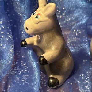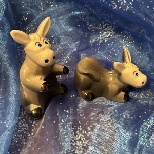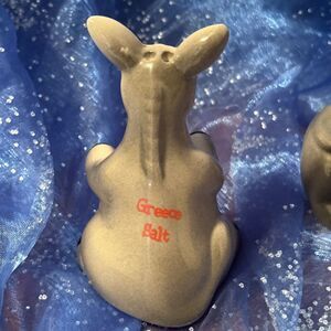 Vintage Ceramic donkey salt/ pepper shakers, Labeled Greece Salt 4” X 2” Each