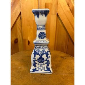 Vintage Ceramic Blue and White Single Candle Holder Home Décor 2.75x7.2” (8206)