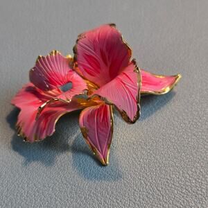 Vintage Cerrito 1982 Hand Painted Light Pink & Gold Orchid Flower Brooch Pin 2"
