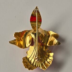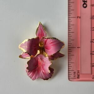 Add a touch of vintage elegance to your collection with this exquisite Cerrito brooch! This beautiful piece features a hand-painted light pink and gold orchid flower design, dating back to 1982.