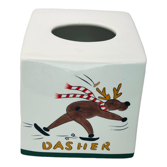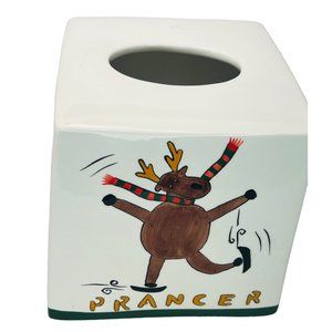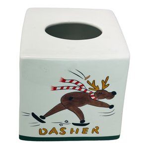 Vintage Certified International Ceramic "Prancer & Dasher" Tissue Box Cover