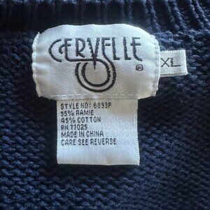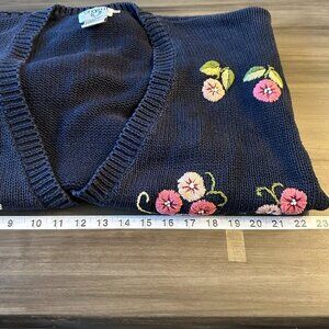 Vintage Cervelle Womens Navy Blue Cardigan Floral Embroidered Size XL