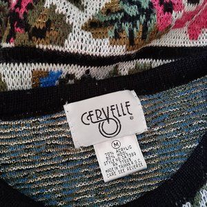 Vintage Cervelle Wool Blend 80s Floral Stripe Knit Oversize Tunic Length Sweater