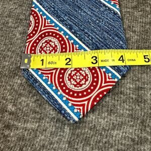 Vintage Cesare Larini Mens Tie Blue White Red Geometric Traditional NeckTie