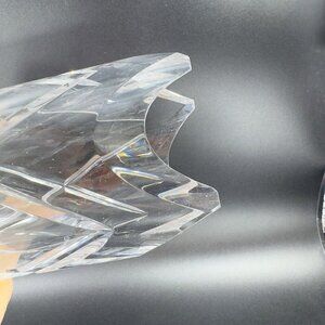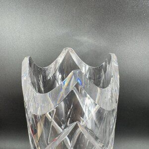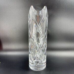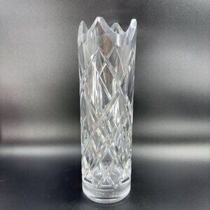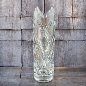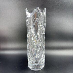 Vintage Ceska Clear Cylinder Crystal Glass Vase Cut Top Edges Czechoslovakia VTG