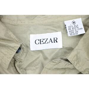 Vintage Cezar Light Olive Green Silk Button Front Long Sleeve Y2K Dress Shirt