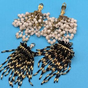 Vintage Cha Cha Seed Bead Earrings Long Two Pairs Cluster 1980's Clip Ons