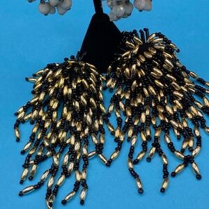 Vintage Cha Cha Seed Bead Earrings Long Two Pairs Cluster 1980's Clip Ons. Both earrings are clip on style.,