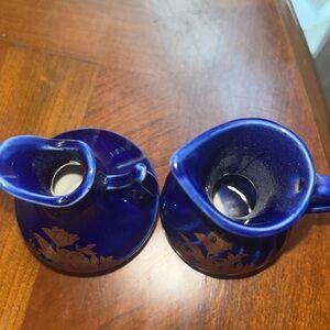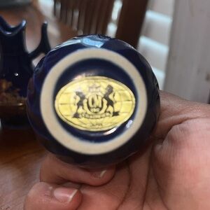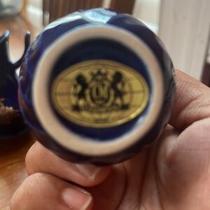 Vintage Chadwick Mini Cobalt Blue And Gold Floral Bud Vases Porcelain Set of 2