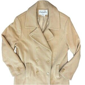 Vintage Chadwick’s 100% Wool Coat Sz 14 Double Breasted Tan Camel 48” Long