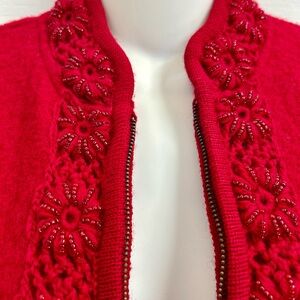Vintage Chadwick’s Christmas Red Boiled Wool Embellished Cardigan Size M