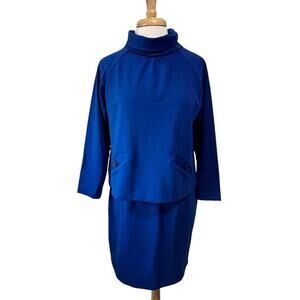 Vintage Chadwicks Ocean Blue Turtleneck Top & Mini Skirt Retro 2pc Set Women 10P