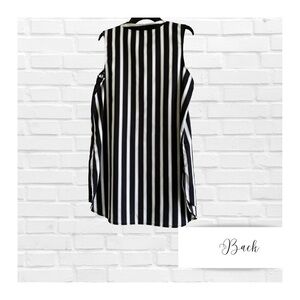 Tags: Vintage, Chadwick’s of Boston, 80’s Fashion, Black and White Stripe, Long Tunic Top, Collarless, Office, Versatile, Tank Top,