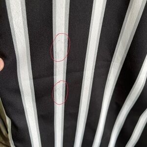 Some photos make it appear yellowed, but this top is not. Aside from the marks mentioned and in photo, the white is a crips white. It has a bit of a shimmer to it as well.
