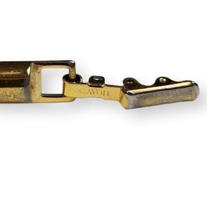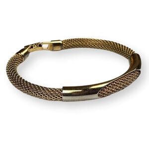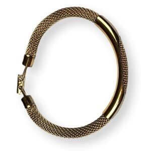 Round gold plated chain mesh with a shiny, partially open bar around the center and a foldover clasp