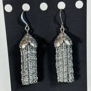 Vintage Chain Tassel Fringe Dangle Hook Earrings Silver Tone Jellyfish Retro