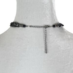 Vintage Y2K. Multi strand necklace. Multiple black beaded strands and one silver tone chain strand. Black beaded tassel pendant with silver tone charms. Adjustable closure in back. Length 19.5”.