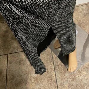 Chainmail bodycon maxi - Made from a metallic acrylic knit / lurex. Silver metallic threads on black in a chainmail pattern.