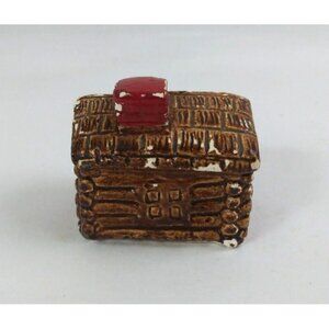 Vintage Chalk Ware Log Cabin 1.75" Salt & Pepper Shakers