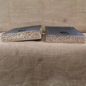 Vintage chalkware plaques from 1950s. Set f 2. One has the leaning tower of Pisa, the other has the Eiffel Tower in Paris. Detailed raised designs on the buildings. Textured sides, and names in recess. Handpainted in shades of tans and browns with silver on the buildings. Back has a wood insert with a hole for hanging. Black is painted black. 8 inches high, 6 inches wide. Paris one is 1 1/4 inches thick at thickest point. Pisa one is 1 3/4 inches thick at thickest point. Good condition, no chips or cracks. Some wear from age and use. Great for anyone who loves these places. Great with many styles of decor.