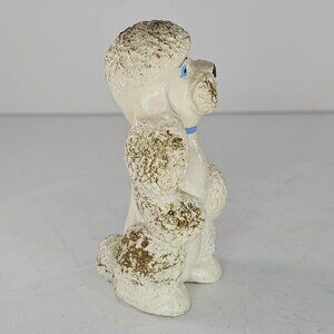 Vintage Chalkware Poodle Figurine White Blue Collar Hand Painted