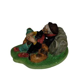 Vintage Chalkware Travelers Rest Homeless Man & Dog Figurine Hand-Painted
