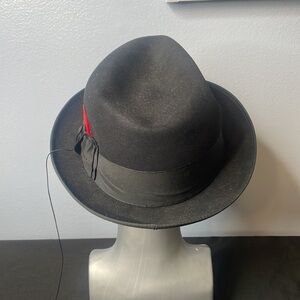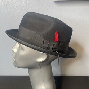 Vintage Champ Forum Atlantic Men's Black Felt Fedora with Red Feather Size 7.5”
