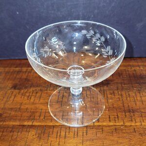 Vintage Champagne Coupe Glass with Wheat Pattern Etchings, One Glass 4" Tall