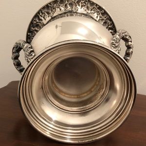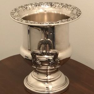 Vintage Champagne Wine Bucket Grape Vine and Leaves Repousse Silverplate