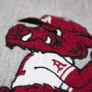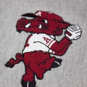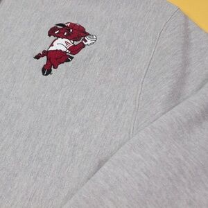 Preowned, Vintage Champion 1/4 Zip Arkansas Razorback Pullover Sweatshirt with some wear, a very light red stain near the front embroidery. May be hard to see at times, but it is there. Otherwise in good condition. See ALL photos for quality, measurements and condition.