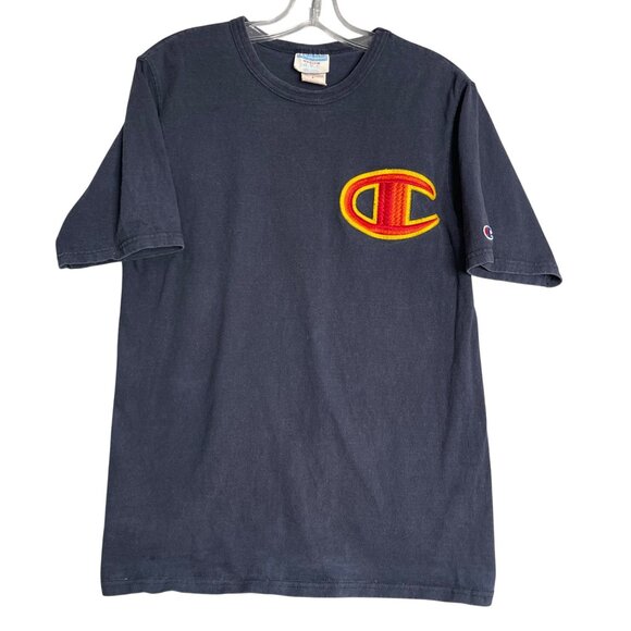 Vintage Champion Big C Logo Embroidered T Shirt Mens M Navy Blue Sportswear