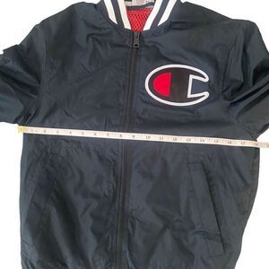 Vintage Champion Bomber Varsity Jacket Size XS Embroidered Logo Black White MY23
