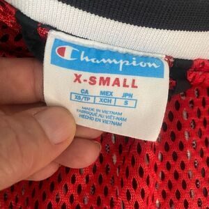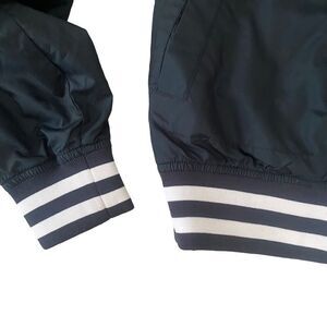 DESCRIPTION: AMAZING VINTAGE CONDITION, truly a great find. Embroidered logo's. Striped cuffs and waistband. Amazing Red mesh lining. Impeccable! 100% Polyester.