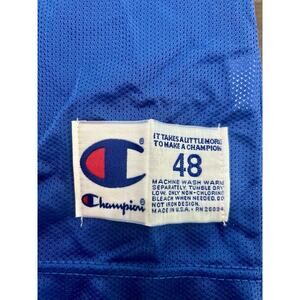 The product is a vintage Champion Chris Webber #4 Golden State Warriors NBA jersey in size 48. This jersey is in new with tags (NWT) condition and features the iconic team colors of blue. Representing the National Basketball Association (NBA) and the Golden State Warriors, this jersey is a perfect addition for any basketball fan's collection. Made by Champion, a trusted brand in sports apparel, this jersey is a must-have for any man looking to support their favorite team and player in style.