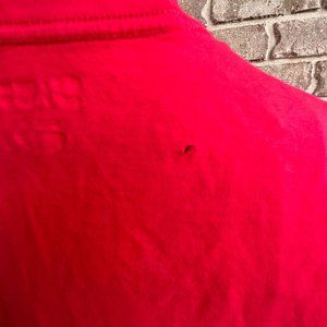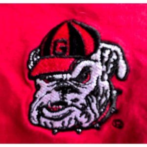 Red background with embroidered Georgia Bulldogs with UGA, the mascot, also embroidered