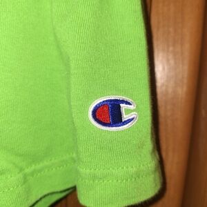 Vibrant green Champion t-shirt with bold 3d graphic design. Features multicolored logo text. It's pre-loved and in great condition (see pics). Active, athletic, athleisure, sporty, everyday, streetwear. St. Patrick's Day