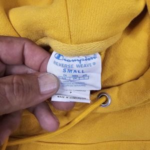 Yellow Champion Reverse Weave Hoodie Mens Small. Excellent condition with no flaws or defects found. #133