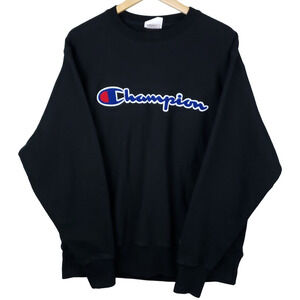 Vintage Champion Men's Embroidered Reverse Weave Pullover Sweatshirt Large Black