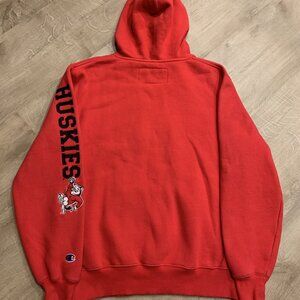 Vintage Champion Northeastern University Huskies Hoodie Men's Small S Embroidered Red Heavyweight Sweatshirt Pullover Collegiate Spell Out