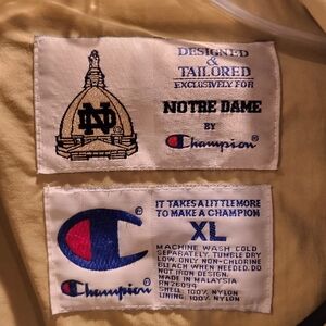 Benefits Charity! Vintage Champion Notre Dame Embroidered Windbreaker Jacket Mens Size XL Full Zip. Pre-owned but good condition! Chest Measurement is 30"