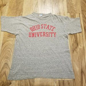 Vintage Champion Ohio State Tee Shirt L 70s Gray 65 35 Rayon Blend Blue Bar Tee